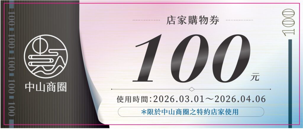 市集活動 Market2026台北燈節|店家購物券 Posted on 2026-02-062026-02-22 by zsdda 中山商圈 使用規則 本券之發行為參與活動之獎勵票券,可等同現金折抵,以主辦單位加蓋戳章為依據。 本券使用期限為2026年3月1日至2026年4月6日止,限於中山商圈之特約店家使用,請依各特約店家的營業時間進行使用,逾期作廢。 本券不得找零、轉售、兌換現金或以電子形式儲存金錢價值使用,逾期作廢且不得退換現金。 本券撕毀、汙損嚴重致難以辨識者無法使用。 特約店家針對票券面額不另行開立發票或收據。 主辦單位保有最終修改、變更、解釋本活動之權利,若有相關異動將會公告於活動網站,恕不另行通知。 2026台北燈節|市集消費券 2026台北燈節|好禮大贈送