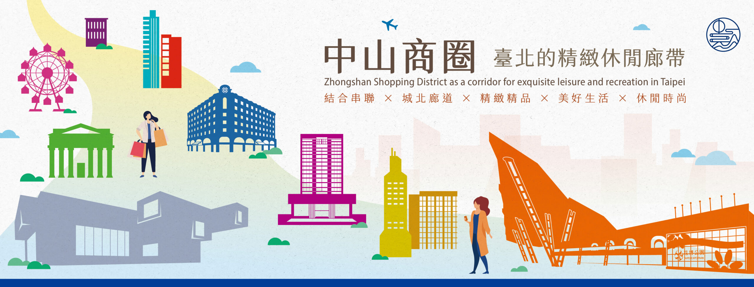 中山商圈坐落於臺北市中心,自日治時期以來一直是臺北的休閒地區。中山北路是日治時期的敕使街道(日本皇族參拜台灣神社時所走的道路),現已成為城北無圍牆博物館的藝文軸線,沿線有豐富的文化資產。花博公園作為佔地寬廣的都會型公園,是市民重要的休閒與運動場所。