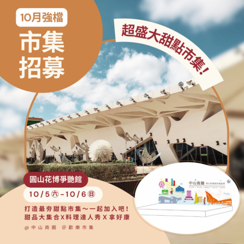 中山歡樂市集 招商訊息 ▍活動名稱:9月心中山、10月爭艷館..