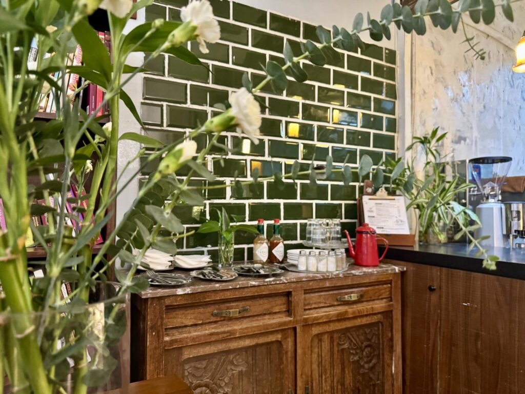 獅子甜點下午時段店內客人不多,坐在窗邊可以享受一頓美味的下午茶。但是後台卻很忙,跟桌前的客人呈現對比。這是因為附近的辦公室早就預定了下午茶,甜點師傅趕著下午3點出貨。而且網路預定的外送單,也要趕著裝箱出貨。