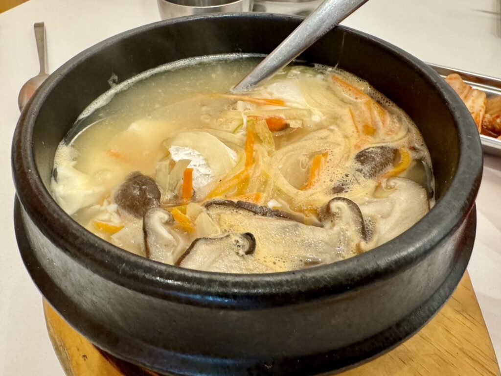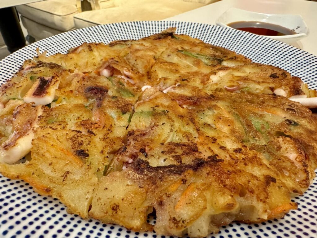 走進店裡面,白色的餐桌上擺放著韓式的不銹鋼碗筷,很多人拿起桌上的筷子在討論為什麼韓國筷子是扁的。自己找好座位後,老闆娘很親切地拿著菜單過來,順便上個免費而且可以續加的小菜。上菜時,老闆娘不做作的說:我幫你把煎餅煎大一點、脆一點。沒錯!就是這種感覺,一種韓式小館的輕鬆感!