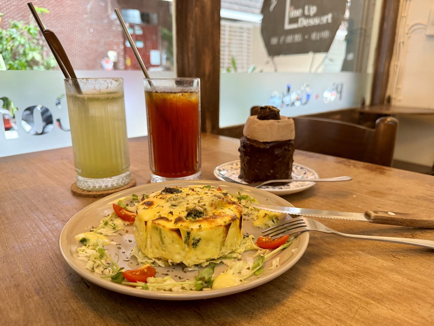 獅子甜點下午時段店內客人不多,坐在窗邊可以享受一頓美味的下午茶。但是後台卻很忙,跟桌前的客人呈現對比。這是因為附近的辦公室早就預定了下午茶,甜點師傅趕著下午3點出貨。而且網路預定的外送單,也要趕著裝箱出貨。